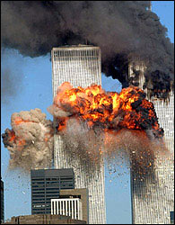 Fui almoçar e vi na TV as torres desabando e a filmagem do avião batendo. Nossa. Incrível. Isso é muito impressionante. Não consigo me concentrar no trabalho hoje, tá foda. Todo mundo em choque, sem acreditar. E ninguém ainda assumiu os atentados. Já falaram em palestinos, em japoneses se vingando da bomba de Hiroshima (essa foi ridícula), mas de verdade mesmo ainda ninguém sabe. E as torres no chão.
