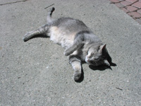 E, depois de horas conversando com o pessoal no churrasco sobre bichinhos de estimação, fiquei morrendo de saudade do meu cachorro, que está com 2 anos e 3 meses, liiiiiiiiiiiiindo demais, meu Link. E aproveito para apresentar a Cleo, que é a gata da família do meu marido. Nesta foto ela está tomando sol na calçada.