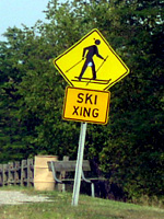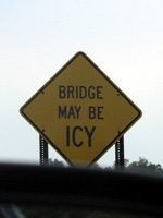 A primeira não precisa de tradução, a segunda “A ponte pode estar coberta de gelo” e a terceira “Travessia de Skis”.