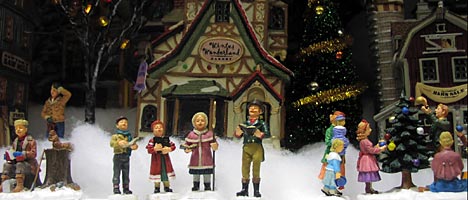 Todos esses bonequinhos, árvores, casas, tudo é vendido separado, você compra e monta a sua villa do jeito que quiser. Algumas casinhas acendem a luz e as árvores de natal também, é muito bonitinho.