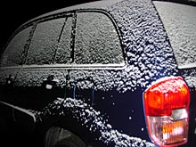 Nossa, cheguei da rua agora, tá -2 graus lá fora e nevou um pouco. Desta vez a neve acumulou na rua mesmo, no asfalto, formando uma camada fininha, branca e brilhante. E formou uns desenhos diferentes no carro, acho que estava ventando bastante.