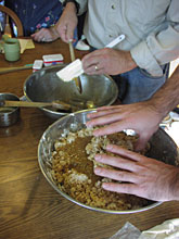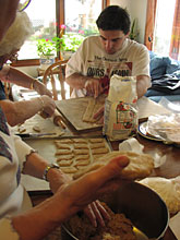 Fizemos no total 485 biscoitos, que vão ser distribuídos entre os cozinheiros presentes. Ficou bom, mas quase quebrei os meus dentes: esse biscoito se chama hard cookies (biscoitos duros) e eles acham que essa é a graça…