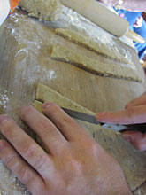 Aí tem que amassar tudo com as mãos mesmo, até fazer uma bola. Vai à geladeira por uma meia hora e então começa o processo de abrir a massa e cortar os biscoitos.