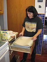As formas são forradas com papel especial para os biscoitos não grudarem e então vão ao forno para assar.