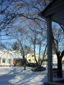 O dia estava lindo, sol e um céu azul maravilhoso, apesar de -12 graus lá fora. Saí de casa duas horas antes da prova, só para poder ir parando pelo caminho, tirando fotos da cidade com neve e um tempo maravilhoso.