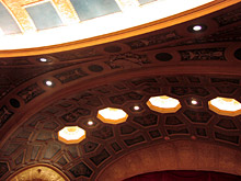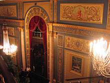 A apresentação foi na Opera House de Detroit novamente, e desta vez eu tirei umas fotos lá dentro, acho o teatro muito bonito e é bem diferente dos teatros importantes que temos no Brasil (o Municipal do Rio e de São Paulo e o teatro de Manaus). A arquitetura e a decoração nada lembram aos nossos teatros, que por sua vez, são copiados dos teatros famosos europeus. Tirei poucas fotos porque era proibido, então dei uma voltinha disfarçadamente e quando veio o primeiro funcionário falando que não podia, eu tive que parar. Aliás, não entendo porque um lugar desses, que é uma das atrações turísticas da cidade, proíba que se tire fotos. Entendo e respeito que não se possa tirar fotos durante a apresentação, mas não poder tirar fotos nem do prédio em si, no intervalo, não entendo mesmo.