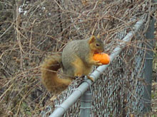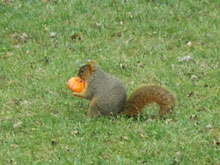 Adriana, você falou dos esquilos no Halloween levando as mini-abóboras embora e me lembrei que Gabe tirou duas fotos dos bichinhos no quintal da mãe dele fazendo a mesma coisa. Foi em dezembro passado, dia 14, minha sogra colocou as mini-abóboras que estavam enfeitando a entrada da casa na época da festa para os esquilos e pássaros comerem. Os esquilos, espertinhos, carregaram as abóboras, comeram algumas e enterraram as demais.
