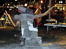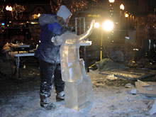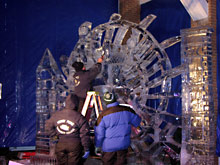 O mais impressionante é ver que todas estas esculturas são feitas a partir de pequenos blocos de gelo, retangulares, que vão sendo grudados uns aos outros e esculpidos em parte. Quando uma parte está pronta, a área que fará contato com o bloco de gelo existente é derretida, e então conecta-se as partes. Da mesma forma que grudamos uma vela em um prato. Um enorme quebra-cabeças em três dimensões.