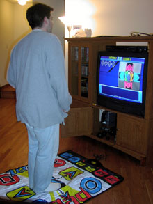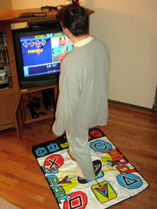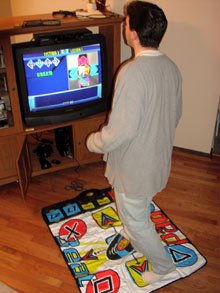 DDR é abreviação de Dance Dance Revolution, uma mania japonesa que começou nos fliperamas e se espalhou pelo mundo, se expandindo para os computadores e videogames. A proposta do “jogo” é simples: ao som de uma música, várias setas indicando a direção dos seus passos aparecem na tela, e você tem que seguí-las no tapete com sensores que é o “controle” deste jogo (o tapete é conectado no lugar dos controles tradicionais e você pode jogar com dois tapetes, junto com outra pessoa fazendo a mesma coreografia ao seu lado, ou mesmo usar os dois tapetes como um maior, bem mais difícil).