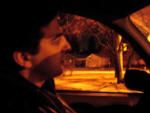 Driving in Michigan: Toda vez que Gabe dirige, lá estou eu tirando fotos pela janela do carro. Muitas vezes tiro fotos dele quando está dirigindo mas não tinha conseguido ainda nenhuma sequência que ficasse legal. Hoje aproveitei a iluminação noturna para brincar, e gostei. As ruas aqui não são muito iluminadas, tirando as avenidas principais, as ruas residenciais só tem as luzes das casas mesmo. E não se usa muito a luz branca que temos no Brasil, a maior parte das avenidas tem a luz amarela, que não ofusca tanto, e uma outra meio esverdeada. Tirando as fotos em diferentes ruas e avenidas, a iluminação mudou bastante, e consequentemente as cores também. O percurso foi curto, apenas 10 minutos ou menos, mas para conseguir essas poucas fotos que achei interessantes, tirei mais de 100. Obviamente minha câmera é digital, senão já estava falida.
