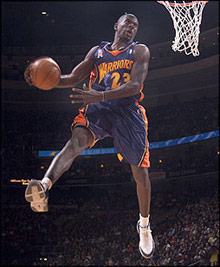 Acabei de assistir na TV o campeonato de enterradas da NBA, Sprite Rising Stars Slam Dunk. Realmente é inacreditável o que eles inventam, e como conseguem voar tão longe e tão alto – sim, eles voam, aquilo não é mais “pular”. Os participantes são jogadores da atual temporada da NBA que estejam na liga há três anos ou menos. O vencedor deste ano foi Jason Richardson, em seu segundo título consecutivo. A competição a cada ano fica mais difícil, já que o repertório de movimentos e enterradas espetaculares vai se esgotando. Hoje o título só foi decidido na última enterrada, a disputa estava entre o vencedor de 2001, Desmond Mason, e Jason, campeão em 2002.
