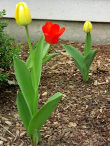 Minhas tulipas vermelhas estão quase todas abertas há alguns dias, e hoje as primeiras amarelas, duas, começaram a abrir também. Eu já estava achando que não veria vermelhas e amarelas juntas, mas parece que elas resolveram se mostrar.