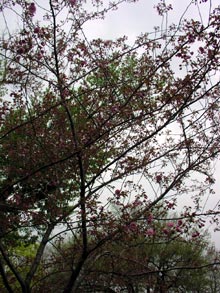 A minha árvore está totalmente florida, é uma cerejeira japonesa, linda.