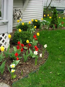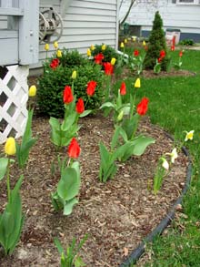 Minhas tulipas tambem ja estao apagando. As vermelhas na frente de casa ainda estao la. Os daffodils tambem ja estao acabando. Preciso de mais plantas que florecam no inicio do verao.