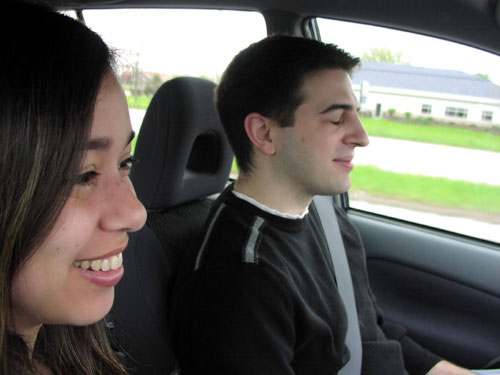 No, I was not sleeping while driving. I purposely closed my eyes when Luciana took the picture. I did a few other funny faces while she took the picture, but those have been deleted.