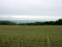 O dia estava nublado e frio, mas toda a vez que um raio de sol conseguia atravessar as nuvens, via-se como é azul e limpa a água do lago, linda. Uma península dentro da baía é a sede de muitas vinícolas e plantações de cereja da região, além das mansões de veraneio que ficam de frente para o lago. Passamos o dia indo de uma vinícola para outra, provando os vinhos locais e em um tour sobre a fabricação de vinhos.