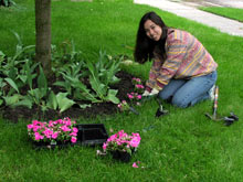 Mesmo chovendo todos os dias e com a temperatura bem ruinzinha, eu e mamãe resolvemos plantar umas flores no jardim. Agora que as flores da primavera já se foram, estamos preparando o jardim para o verão: plantamos várias marias-sem-vergonha, nos canteiros onde eu tinha plantado os lírios e outras plantinhas que estão crescendo ainda. Só para dar um colorido no jardim enquanto estas plantas não florescem.