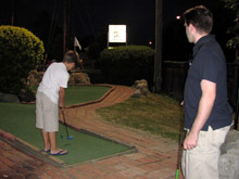 Vc nunca havia ido ao mini golfe? Eh uma delicia, ne? Eu ja fui varias vezes aqui. Tem dois que eu adoro aqui em Memphis, o Boogey’s e o Putt-Putt. Sendo que o Boogey’s tem mini-golfe e tambem tem um campo de treino de golfe tambem, desses aonde vc fica no mesmo lugar treinando a tacada. 🙂 Eu comecei a gostar em 2001, quando vim visitar a familia do Danny. Depois que vim pra ca em definitivo, ja fomos varias vezes, inclusive uma vez no inicio da primavera, quando ainda estava muito frio e nos dois, os loucos, todos cheios de casacos, luvas e gorros e jogando. 🙂