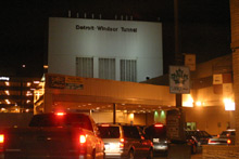 Na ida fomos pelo túnel que passa por baixo do Rio Detroit, e na volta viemos pela Ambassador Bridge, que é a ponte cartão-postal que liga as duas cidades e países. A imigração canadense foi em 5 segundos: olharam pra gente, perguntaram onde íamos e mandaram seguir. Assim, sem documentos nem nada. Já na volta, na imigração americana, o cara ficou enchendo o saco do Gabe, que não levou o passaporte – americano não precisa de passaporte para ir ao Canadá, mas eles estão querendo que todo mundo leve por razões de segurança. Ele ficou falando pro Gabe “ela é brasileira e eu não teria como saber se ela não falasse, então você podia ser qualquer coisa e eu não tenho como saber”, hehehe. Aí ele virou para mim e falou “não deixa ele sair de casa sem o passaporte não!”. Essa foi boa, o Gabe que é americano levando esporro da imigração! Mas foi tranquilo, o cara tava falando tudo rindo, só mesmo para dar um “hard time” pro Gabe não esquecer mais o passaporte.