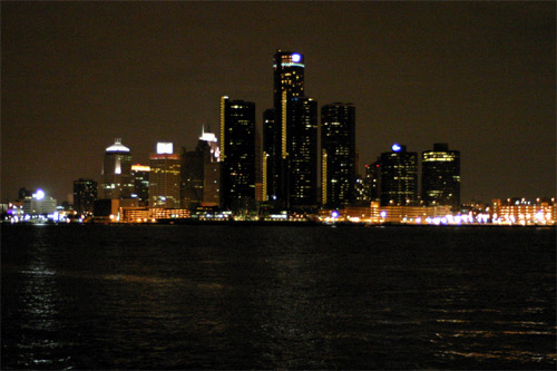 Antes disso, fomos até a beira do Rio Detroit e tiramos umas fotos da cidade, mas tava um frio absurdo por causa do vento, minhas orelhas estavam doendo tanto que eu achei que fosse desmaiar! Fiquei uns bons 10 minutos dentro do carro meio zonza, minha cabeça estourando por causa do maldito vento no ouvido.