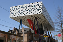 Já quase chegando em Chinatown, fiquei surpresa com o prédio muito louco da faculdade de Design de Ontario, que estão terminando de construir. O formato, completamente inusitado, chamou a atenção, e a surpresa maior foi ver como a ‘caixa’ quadriculada é sustentada por essas pilastras que parecem tão ‘fininhas’ e ainda por cima, torcidas e irregulares. Sempre me impressiono com a evolução da engenharia, imagino o que Gaudí não faria com essa tecnologia em mãos.