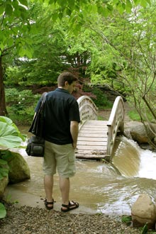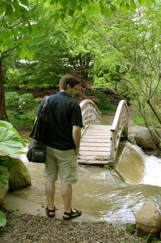 Repararam na pontezinha que o Gabe não pôde atravessar? Com o tanto que tem chovido aqui, o lago encheu e inundou uma boa parte do jardim japonês, onde fica essa pontezinha. Uma pena…