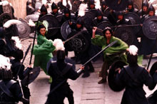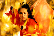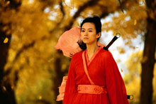 Assistimos ao filme “Hero” (Ying xiong) esta semana e estou até agora de boca aberta: o filme é lindo, LINDO. Não é a história que é linda não, a história é OK (nada demais), é um bom filme de kung fu (quem gostou de Crouching Tiger, Hidden Dragon – O Tigre e o Dragão foi o título no Brasil, provavelmente vai gostar de Hero), mas a fotografia e a direção de arte são maravilhosas. Todas as cenas são de babar, as cores fantásticas, dá gosto de ver. Pra mim não precisava nem de diálogos, só de ver essas cenas já ficaria feliz. Vou ver de novo no final de semana. E de novo. E mais uma vez.