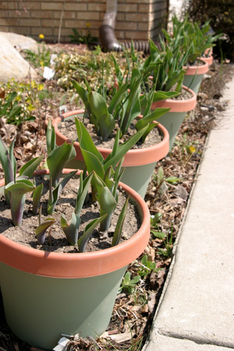 Eu não plantei tulipas ano passo porque nós acabamos viajando duas vezes durante a época que eu tinha que plantar, mas tive a feliz surpresa de receber 7 vasos de tulipas que a minha sogra plantou para mim. Ela não deixou os vasos dentro de casa, o que significa que eu posso deixar o vaso lá fora, pois elas estão crescendo no passo normal das tulipas plantadas no chão, e vou poder transferí-las no final do ano para o meu jardim. Não sei que cores elas são, estou super curiosa. A minha cerejeira linda vocês conferem na foto, não é maravilhosa? Meu vizinho também tem uma, e as maples na nossa rua estão com suas florzinhas vermelhas. No momento, 22 graus lá fora, tem feitos dias lindos assim quase todos os dias, o que não é comum nesta época do ano.
