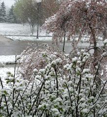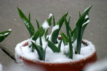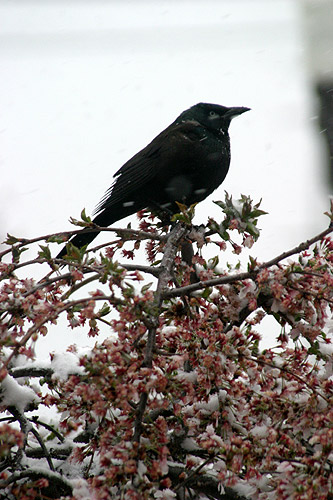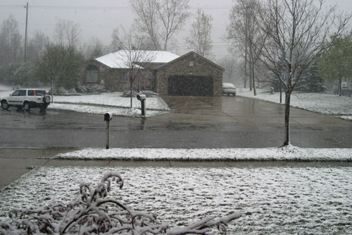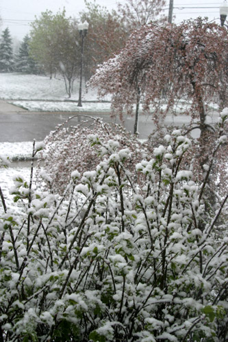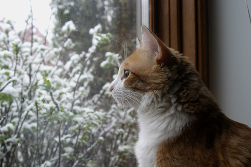 E depois dos 27 graus e tempo bom, a temperatura caiu e – surpresa! – ontem e hoje fomos presenteados com mais um pouco de neve. Ontem nevou o dia inteiro mas não ficou acumulado, porque o chão não estava frio o suficiente. Então nevava e derretia, parecia que tinha chovido. Mas caiu aquela neve fininha o dia inteiro sem parar. Hoje acordei com o Gabe abrindo a persiana e xingando, e o motivo vocês vêem nas fotos: continua nevando sem parar, só que agora a neve está acumulando. Os passarinhos estão desorientados, coitados! As tulipas vão ficar numa boa, elas gostam de frio e crescem mesmo com a neve (desde que a temperatura não caia tanto, no momento está fazendo 0 grau, o que não é tanto frio assim). Quando parar de nevar vai derreter tudo rapidinho, então não estou preocupada. A previsão para amanhã é de mais neve, mas com mínima de 5 graus e máxima de 11, vai esquentar 😉