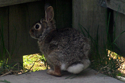 Isso aqui está virando um zoológico, ontem apareceu um pato na minha grama em frente da casa e hoje apareceu um coelhinho aqui no quintal, perto do portão e da cerca para a casa vizinha. Não sei de onde esses bichinhos todos estão vindo, mas eles são uma gracinha.