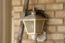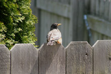 UPDATE: Acabamos de descobrir que o pato (na verdade uma pata) fez um ninho embaixo da bay window na frente da casa! Estávamos procurando o Gato (que escapou quando o Gabe abriu a porta para pegar a correspondência) e acabamos encontrando a pata sentadinha no ninho. Será que em breve teremos patinhos? Enquanto isso, aqui atrás da garagem tem um ninho de Robin, a Sra. Robin fica p da vida toda vez que alguém abre a porta da cozinha e fica piando na cerca até a gente fechar a porta. Não dá para ver se tem ovinhos no ninho, mas como ela fica bastante tempo por lá chocando, deve ter algum.