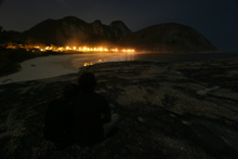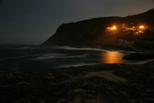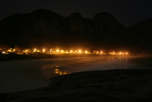 Eu amo essa praia, fica perto da casa dos meus pais em Niterói e fui muito lá quando era adolescente. É a praia dos surfistas e do pessoal jovem da cidade, um pedacinho de areia cercado de verde e delimitado por pedras enormes. Logo que chegamos estava uma noite bonita com a lua tão clara que fazia até sombra no chão, e resolvemos dar um pulinho até lá para tirar umas fotos noturnas. Meu irmão e a namorada foram os modelos na terceira foto.