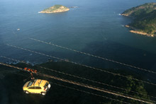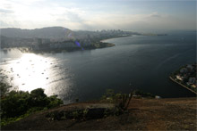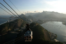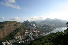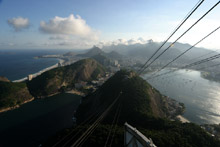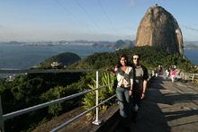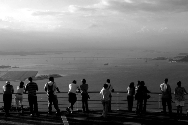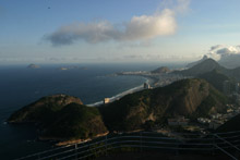 Mesmo tendo visitado o Brasil e o Rio muitas vezes, Gabe nunca tinha ido ao Pão de Açúcar, o que tratamos de remediar desta vez. O tempo ficou ruim durante a semana e na sexta-feira deu uma melhorada, mas vocês ainda podem ver as nuvens nas fotos (quem estava no Corcovado devia estar tendo problemas). Eu já fui até o topo muitas vezes, mas nunca me canso dessa vista maravilhosa.