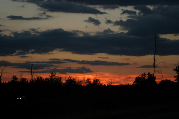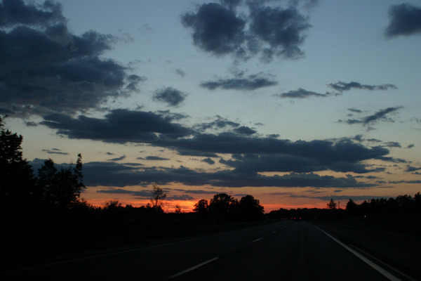 Saímos na sexta à noite, e como nessa época do ano o sol só se esconde às 21h30, tivemos o privilégio de assistir ao show de cores da estrada.