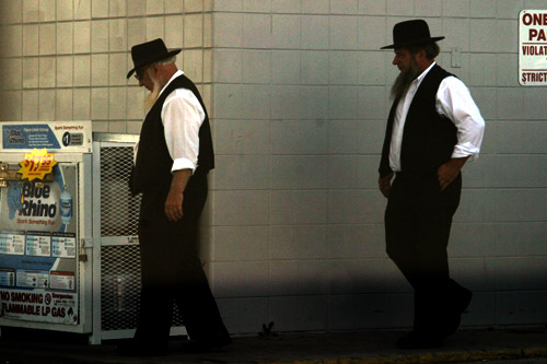 No caminho de volta, ainda em Ohio, paramos para colocar gasolina e tinha um grupo de Amish que parou no mesmo posto. Eu nunca tinha visto nenhum Amish “ao vivo” e tirei umas fotos de dentro do carro mesmo. Tem algumas cidades Amish em Ohio que são abertas a visitação e você pode comprar mobília e outros produtos vendidos pela comunidade, um dia vou ter que parar numa cidade dessas.