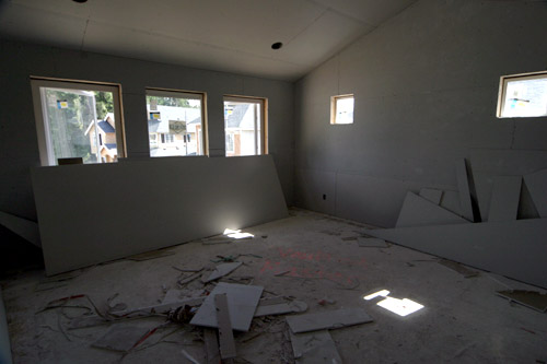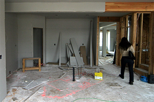 Depois daquela confusão com a empresa de acabamento e a tal mulher insuportável eles colocaram uma supervisora para resolver tudo com a gente, então logo no primeiro final de semana que chegamos aqui fomos lá para escolher todos os pisos, azulejos, carpete, cor da madeira e pronto, fim do estresse (pelo menos do estresse com essa empresa especificamente). Essa semana eles já vão colocar os pisos, na semana passada eles colocaram todos os armários da casa (de cozinha, banheiro, etc), ligaram a luz, colocaram rodapés, todas as portas e a estrutura da cerca no quintal. Agora a casa está definitivamente começando a ficar com jeito de casa, ao invés da confusão de paredes sendo colocadas e pó de madeira pra todo lado.