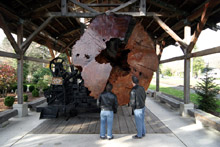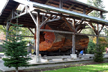 Depois dessa comilança absurda fomos passear um pouco pela região. Paramos para dar uma olhada nesse tronco de pinheiro que já tínhamos visto várias vezes na estrada passando por North Bend. A árvore tinha mais de 400 anos e o tronco tem nada menos do que 11 pés de diâmetro (mais de três metros)! E pensar que há muitos e muitos anos existiam milhares de árvores como essa na região, que loucura…
