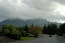 De lá dirigimos pelas ruas residenciais da área, parando para tirar fotos das montanhas e depois fomos caminhar perto do Rattlesnake Lake. Paramos o carro, mal começamos a andar e começou a chover forte. Ignoramos a chuva e fomos até o Visitor Center, que estava fechado mas tem uma vista bonita do lago. Voltamos pro carro debaixo de uma chuva mais forte ainda, mas não apressamos o passo, fomos curtindo a chuva mesmo e o dia de outono. Foi uma caminhada razoavelmente longa e ficamos ensopados. Tivemos que nos recuperar tomando um chá quentinho em um café local, o Twede’s. E confesso, dividimos uma pumpkin pie e o Robert comeu a torta de cereja famosa do lugar e da série Twin Peaks.