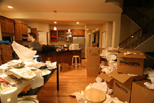 Depois de três dias abrindo caixas e arrumando a confusão, consegui parar para respirar agora e ligar o meu computador pra vir aqui escrever. Deu tudo certo na mudança, até agora (abrimos já a maioria das caixas com itens frágeis) nada chegou quebrado e o que falta mesmo terminar de arrumar ainda é o escritório.