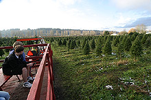 E neste sábado lá fomos nós para uma fazenda de árvores de Natal em Redmond procurar a nossa “árvore perfeita” para esse Natal. Debatemos muito esse ano se compraríamos uma árvore falsa ou de verdade, mas acabamos optando por mais uma vez seguir a tradição (e para quem não sabe, árvores naturais são a opção ecologicamente correta, por serem biodegradáveis, ao contrário das de plástico – normalmente feitas de PVC). As árvores por aqui são beeeeem mais baratas do que em Michigan, acho que é porque estamos no Evergreen State (evergreen = sempre verde, são as diversas espécies de plantas que não perdem as folhas no inverno, os pinheiros são a maioria nessa família).
