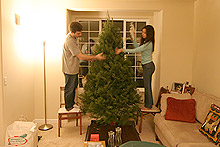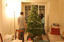 com certeza essa arvore esta perfeita!! faz tempo que nao vejo uma arvore tao pomposa assim! aqui elas sao mais peladas, principalmente no topo! Mas esse negocio de arvore normal ser mais ecologica do que uma de plastico eh meio discutivel haha…comprei a de plastico pq tinha exatamente pena de ficar vendo uma arvore morrer no natal! =/ e depois do natal tem todo o processo de jogar fora. Mas, ta, admito que o meu motivo maior nao foi ecologico haha mas sim que as arvores aqui duram menos que 2 semanas dentro de casa, no quentinho. Se comprassemos agora teriamos que botar na varanda ate um pouco antes do natal. =P assim nao tem graca ne?! bjs!