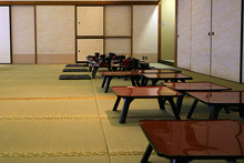 Acordamos às 8h15, quase perdendo o café da manhã, chegamos lá 5 minutos antes de acabar e a nossa mesa estava pronta nos esperando. O menu: sopa missô, salmão, picles de vegetais, a gelatina estranha novamente, arroz e inhame e abóbora cozidos e um bolinho com gergelim que eu comi mas não sei o que era. Os picles e a gelatina eu deixei no prato mesmo. o Gabe só tomou a sopa e comeu arroz. Dificuldade maior: ficar sentadinha no chão durante o café da manhã inteiro, eu agüentei até os 10 minutos finais…