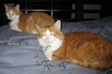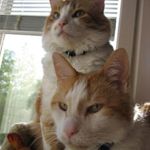 Lindos… os gatos, geralmente, tem uma reação agressiva quando conhecem um outro gatinho, mas depois que ficam amigos, tratam-se como irmãos. O Júnior quase teve um piriri quando trouxemos o Lucky para casa e hoje são os irmãos mais colados que eu já vi.