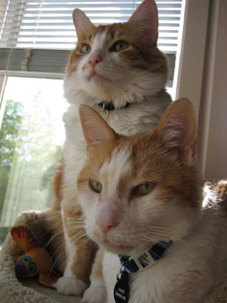 Enquanto estávamos viajando, Gato ficou na casa de um colega do trabalho. Ele e a esposa tem um gatinho laranja chamado Jake. A gente tinha feito um “teste” e deixado o Gato lá por uma noite antes da viagem pra ver se eles iam se dar bem, porque o Jake sempre ficou sozinho e já tem 12 anos, então meu colega estava preocupado com alguma possível reação agressiva. Eles se comportaram bem e deixamos o Gato com eles na noite anterior ao nosso vôo.