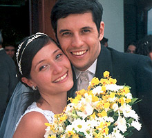 Enquanto estávamos no Japão, mais um dos meus primos queridos se casou. Dessa vez foi o Vinicius, que casou com a Alessandra que eu nem conheci ainda! Como ela não é do Rio, todas as vezes que eu fui ao Brasil acabamos não nos encontrando, e de namorada passou pra noiva, de noiva pra esposa e só fui ver fotos deles dois agora que fui lá procurar no Orkut da noiva, vê se pode. Ah sim, a família foi ao casamento e tirou fotos, mas ninguém se dignou a mandar uma foto pra mim até hoje.