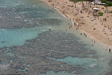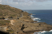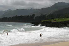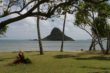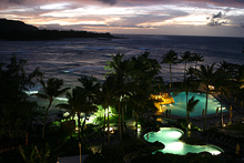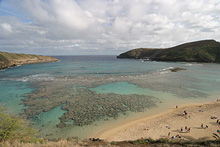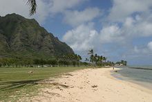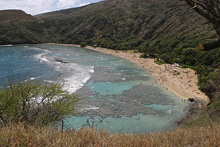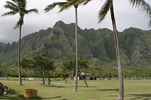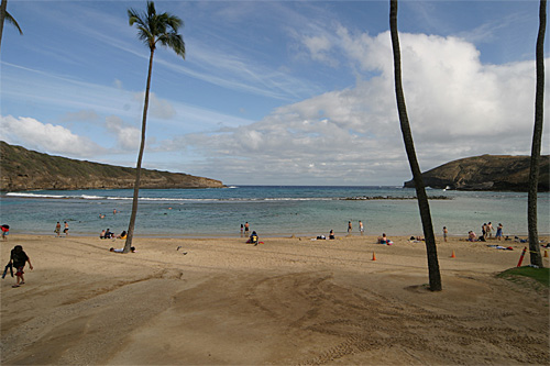 Pegamos a estrada do lado leste da ilha (a parte mais chuvosa) rumo ao sul, paramos em Kualoa para ver uma fazenda antiga com suas enormes árvores de macadâmia, mas a praia linda em frente estava fechada (a água contaminada, não sabemos com o que). O parque é legal, um gramadão com árvores e espaço para picnic, mas sem poder entrar na água não tinha muita graça. Adoro a paisagem dramática de Oahu, com suas montanhas altíssimas quase na beira da água. Continuamos até Hanauma Bay, pra mim o lugar mais bonito da ilha disparado. Essa baía de águas claríssimas é um parque marinho, você paga entrada e assiste a um vídeo de conservação antes de pegar o trenzinho ou descer a pé até a praia. A baía é na verdade uma cratera de vulcão cheia de água – uma das paredes desabou há muito tempo e o mar entrou, criando um ecossistema fabuloso. Alugamos equipamento de snorkel ali mesmo e nadamos com enormes peixes papagaio, tartarugas e outros tantos peixes coloridíssimos. O melhor mergulho que já fiz, mesmo com a água fria e a visibilidade não tão boa, compensados pela quantidade de peixes, o tamanho deles e a variedade, vai ficar na memória pra sempre. Na volta pro hotel, paramos em Waimanalo para tomar um shaved ice que é super comum no Hawaii e pegamos um pôr-do-sol lindão na estrada.