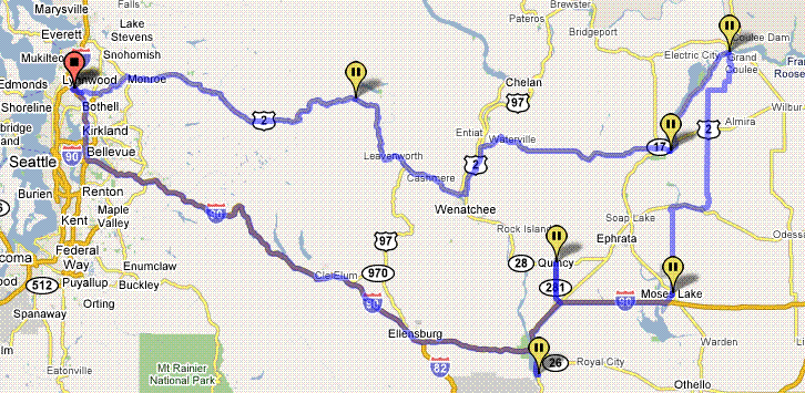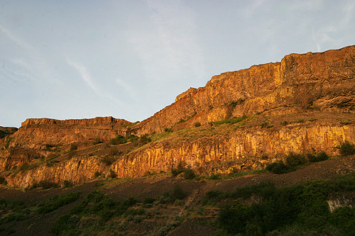 Como meus sogros iam passar 5 dias aqui visitando e a gente tirou 2 dias para pintar, ainda sobraram 3 dias para a gente passear um pouco. Resolvemos então pegar a estrada e passar dois dias no lado leste do estado, e ver as famosas Scablands. Desde que assistimos ao programa The Mystery of the Megaflood explicando como essa área foi formada e como a comunidade de Geologia levou anos e anos para aceitar a teoria de que uma enchente de proporções nunca vistas escavou e esculpiu quilômetros de basalto formando canyons, arrastando pedras gigantescas como se fossem pedrinhas de rio, que queríamos ir até lá.