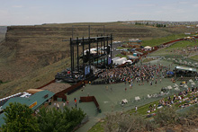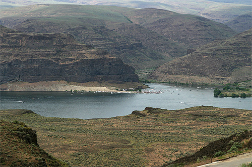 Passamos a noite em Grand Coulee e de manhã pegamos a estrada rumo a Moses Lake. Passamos por lá rapidinho, é uma cidade já muito desenvolvida ao redor do lago, não tem muita graça. O nosso destino era o Columbia Gorge. Continuamos rumo ao parque das árvores petrificadas e passamos na vinícola Cave B que fica do lado do Columbia Gorge Amphitheatre que é o lugar de shows mais famoso do estado e um dos mais bonitos dos EUA. O palco fica bem na beirada do canyon e a vista para quem está assistindo é espetacular. Estava tendo show de não sei quem, uma fila de carros enorme chegando. Pra quem gosta de música vale a pena ficar de olho no calendário de eventos e aproveitar pra vir conhecer assistindo um show bacana.