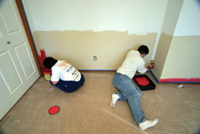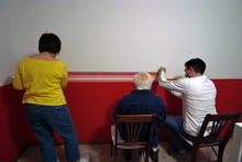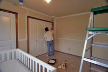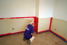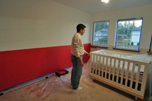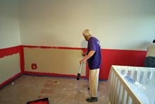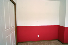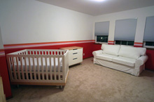 Domingo e segunda passamos pintando o quarto da Julia. Meia parede e teto brancos, meia parede rosa-framboesa e no final o adesivo das listras para dar o acabamento. Meus sogros e Gabe colocaram mãos à obra e o resultado está aí. Eu adorei, ficou do jeitinho que eu tinha imaginado e agora faltam detalhes como uns quadros para a parede, as almofadas coloridas listradas minha sogra vai fazer (compramos o tecido no domingo) e tenho que decidir o acabamento das janelas. Mas pelo menos o trabalho pesado já foi feito!