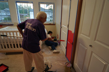 Meus pais tambem, nao pintaram por que trouxemos pintor, e nos colamos o border, mas meu pai pendurou a cortina com meu marido, limpou (com algodao embedido em alcool) o berco e a comoda, minha mae arrumou todas as roupinhas … eles curtem muito.